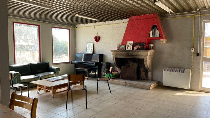 Espace détente pour tous avec : salon, piano, cuisine, distributeur de boissons et snack